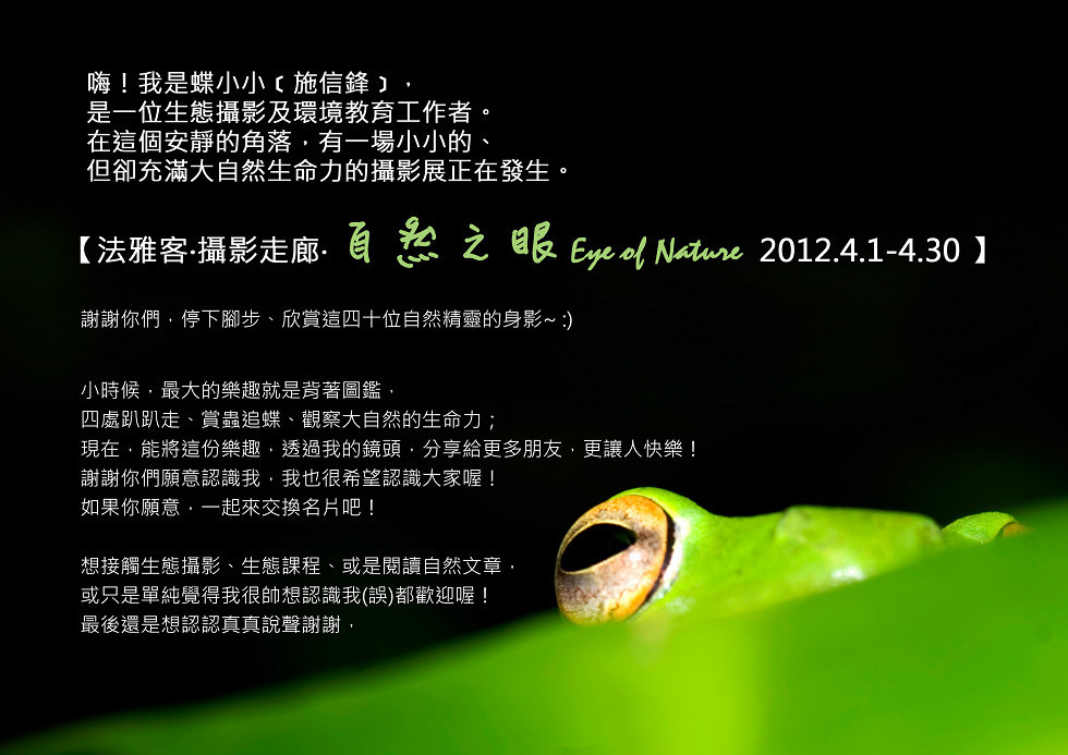報名方式1.傳訊息到臉書 蝶小小的自然影像 粉絲團